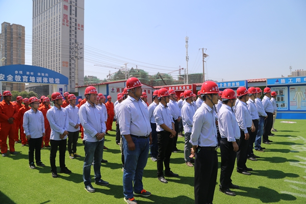 公司安全生產(chǎn)管理部經(jīng)理黃勁松、分公司領(lǐng)導(dǎo)班子成員、所屬各項(xiàng)目經(jīng)理和安全負(fù)責(zé)人、外協(xié)隊(duì)伍代表、工友代表共計(jì)近百人參加啟動(dòng)儀式。儀式由分公司總工程師張玉明主持。