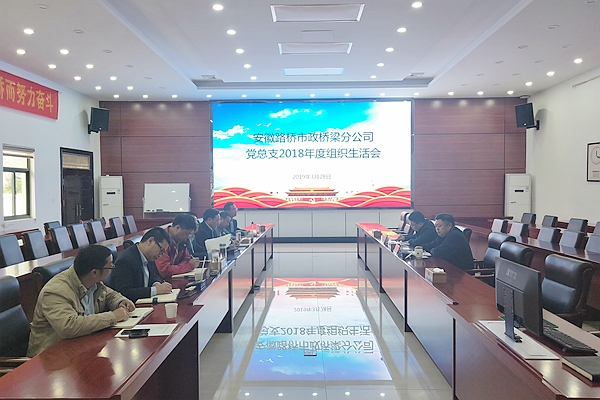 3月28日下午,市政分公司黨總支組織召開2018年度組織生活會。公司黨委委員、副總經理任杰,黨委辦公室主任李靜波到會指導。