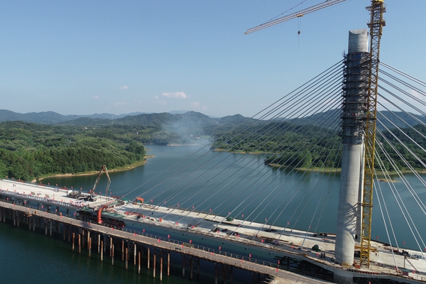 環(huán)萬(wàn)佛湖旅游扶貧公路工程是舒城縣近年來(lái)投資最大、社會(huì)關(guān)注度最高的重點(diǎn)工程之一。老柴崗大橋作為環(huán)萬(wàn)佛湖旅游扶貧公路工程控制性工程,是一座集景觀、交通于一體的橋梁;大橋主塔高81米,整個(gè)橋塔輪廓呈“佛手合十”狀。老柴崗大橋的合龍意味著環(huán)萬(wàn)佛湖項(xiàng)目主體工程的順利完工。