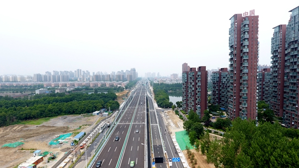 6月9日,暢通二環(huán)(西二環(huán)-合武鐵路)高架提前實現(xiàn)了主線橋及部分匝道的放行通車,極大地改善合肥市北二環(huán)東西向交通狀況,有效緩解了地面道路壓力;同時也刷新了合肥市政大建設(shè)的速度。