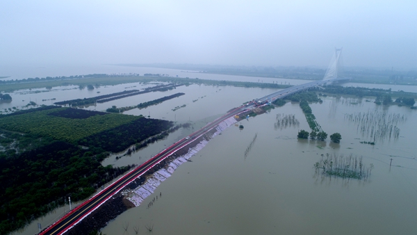 八百里巢湖,水位連續(xù)多日超百年一遇標準。7月22日深夜,由安徽路橋市政分公司黨員職工組成的抗洪搶險突擊隊緊急集結(jié)到環(huán)巢湖大道杭埠河大橋處,筑壩固堤,抗洪搶險,打響蓄洪道路保通攻堅戰(zhàn)。經(jīng)過三天三夜的連續(xù)奮戰(zhàn),筑起了一條長600米、寬12米、高4.5米的“紅色堤壩”。