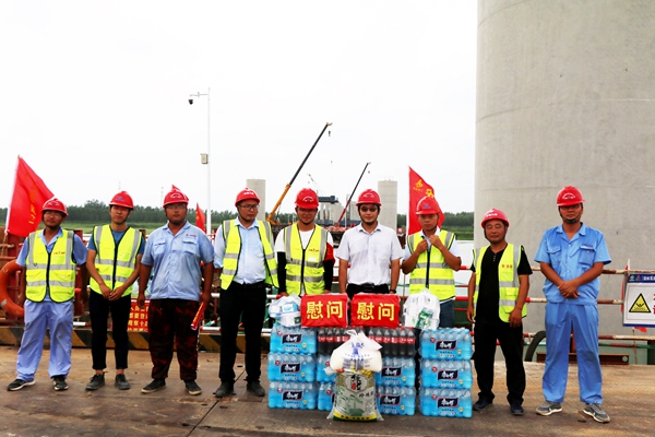 太陽炙烤著大地,體感溫度逼近40℃。面對高溫熱浪,項目多措并舉,全力做好現(xiàn)場施工安全保障關。每日安排送清涼,采購西瓜、綠豆、白糖、礦泉水及防暑降溫藥品發(fā)放到一線工人手中。同時,加強暑期安全施工技能培訓,實施“白+黑”錯峰上崗,全力保障生產安全。