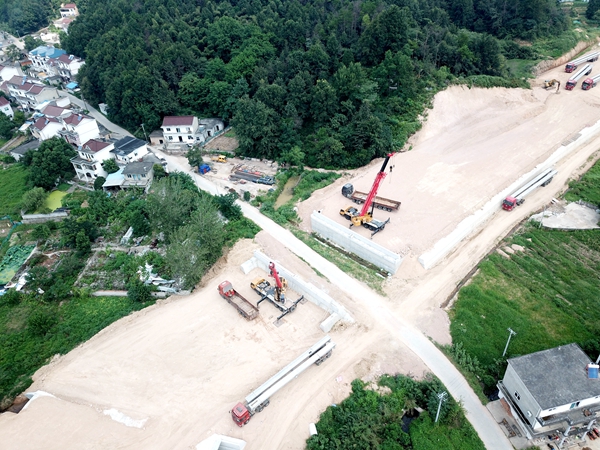 截至目前,萬(wàn)羅山梁板架設(shè)、赤嶺一橋及復(fù)興橋下構(gòu)、郭家橋立柱施工已全部完成,水穩(wěn)站基礎(chǔ)施工提前啟動(dòng)。