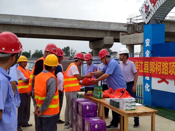 項(xiàng)目積極組織開展“消除事故隱患,筑牢安全防線”主題安全月活動(dòng),組織員工和一線作業(yè)人員觀看安全微電影,學(xué)習(xí)安全防護(hù)常識(shí),提高安全防護(hù)意識(shí)。結(jié)合項(xiàng)目實(shí)際開展交通傷害應(yīng)急演練,帶領(lǐng)一線作業(yè)人員學(xué)習(xí)交通傷害后的應(yīng)急操作,提高一線作業(yè)人員應(yīng)急知識(shí)儲(chǔ)備,提高應(yīng)急處置能力。高溫天氣來襲,項(xiàng)目每天向一線作業(yè)人員發(fā)放十滴水、藿香正氣液等防暑降溫藥品和綠豆、白糖、礦泉水等防暑降溫物資,保障安全生產(chǎn),為大干快上保駕護(hù)航。