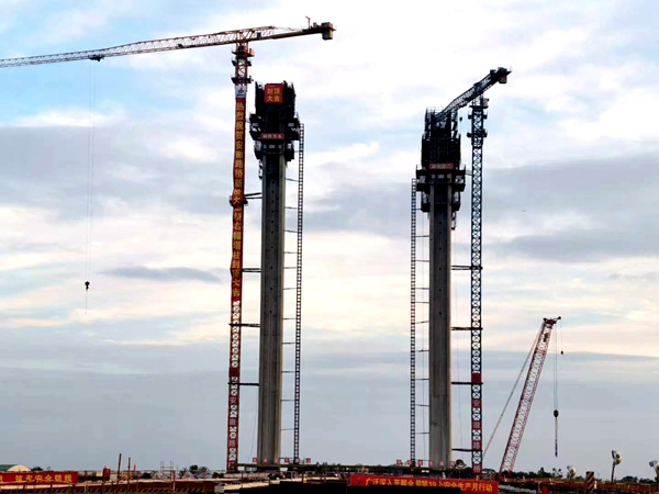 引江濟(jì)淮項(xiàng)目新橋大道橋首根塔柱順利封頂