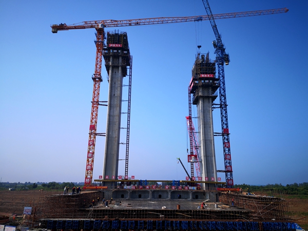 在主橋塔柱施工過程中,項目部始終堅持任務不減、目標不變、標準不降的總基調(diào),堅持質量與安全齊抓,內(nèi)業(yè)與外業(yè)并重的工作原則,相繼克服了超高作業(yè)安全隱患大、交叉施工環(huán)境復雜等一系列難題。主橋塔柱順利封頂標志著大橋塔柱主體工程結束,全面步入斜拉索施工階段。