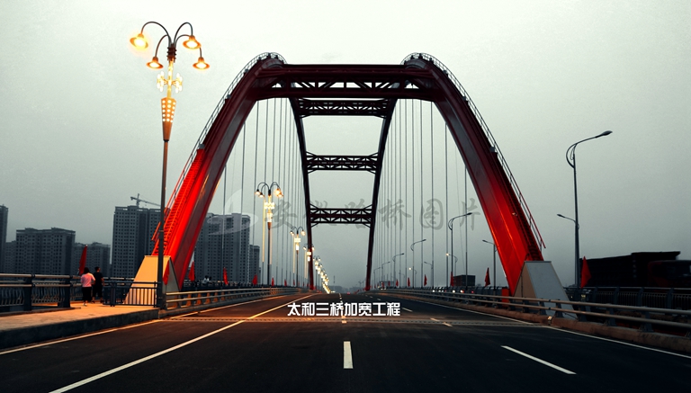 105國(guó)道(三角元至太和段)太和潁河三橋加寬工程于2015年8月開工,2017年7月順利交工。橋梁全長(zhǎng)576.53米,主橋全寬23.2米,引橋全寬19.5m,主跨為152米下承式鋼管砼系桿拱橋,引橋?yàn)?0m箱梁結(jié)構(gòu),下部結(jié)構(gòu)采用柱式墩,鉆孔灌注樁基礎(chǔ),設(shè)計(jì)荷載等級(jí)為公路-I級(jí)。該項(xiàng)目建成通車以來(lái),有效改善了太和縣城潁河兩岸的交通狀況,對(duì)加快城鎮(zhèn)化建設(shè)起到了重要作用。