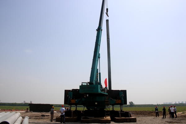 5月7日上午9點58分,安徽建工鋼結(jié)構(gòu)智能制造產(chǎn)業(yè)化基地項目1#廠房基礎(chǔ)第一根預(yù)制管樁試樁成功。