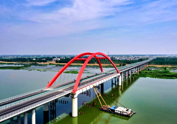固蚌高速是安徽省縣縣通高速重點建設(shè)項目。在全省首次采用提籃系桿鋼箱拱橋施工工藝,施工技術(shù)難度大、任務(wù)重。開工以來,在公司大力支持和精心幫扶下,項目堅持以黨建為引領(lǐng),克服疫情汛情等不利因素影響,圍繞中心工作,堅持高質(zhì)量、高標(biāo)準、嚴要求,提前3個月完工,以優(yōu)異的成績向建黨100周年獻禮。