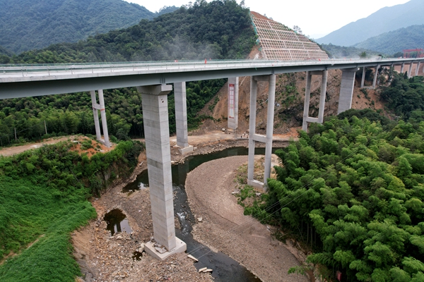 真正敢于挑戰(zhàn)的建設(shè)者,需要非凡的毅力和勇氣。位于標頭的徽水河大橋進場時,每一臺機械設(shè)備都“寸步難行”,每一米道路修筑都要用爆破方式挖掉硬石。他們歷經(jīng)雨水、烈日的輪流考驗,立起了一排排筆直的墩柱,架起了一片片堅實的梁板,將最艱難的1公里鍛造而成。
