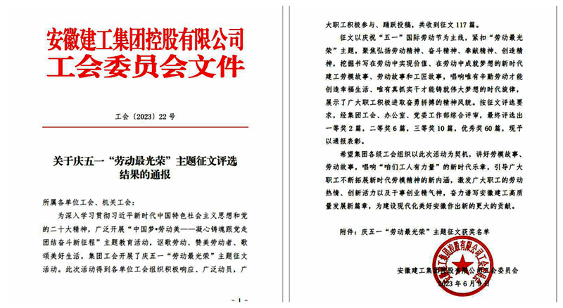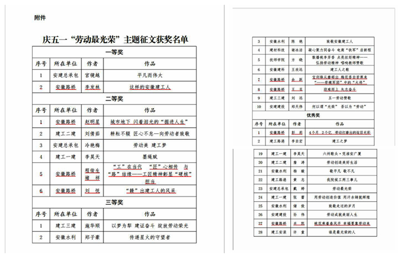 安徽路橋公司在集團(tuán)慶五一“勞動(dòng)最光榮”主題征文活動(dòng)中喜獲佳績