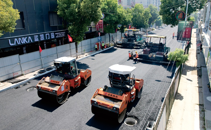 項目部提前組織謀劃成立勞動競賽領導小組,于5月10日順利舉行“三號聯(lián)創(chuàng)”暨勞動競賽啟動儀式,牢固樹立“工期就是效益”的理念,快速掀起大干快干熱潮。從正式開工時的道路破除到路基施工階段的碎石、灰土施工再到現(xiàn)階段的水穩(wěn)、瀝青攤鋪,施工人員日夜堅守,鎖定年度產值目標,優(yōu)化施工方案,科學倒排工期,強化資源協(xié)同,時刻把勞動競賽的使命任務記在心里、扛在肩上。截至目前,項目玉泉路一期和新蓼大道一期工程分別于六月中旬和七月下旬完成瀝青攤鋪等全部施工任務,較原計劃放行時間分別提前了3個月和2個月。在此基礎上,項目部以點帶面,連線成環(huán),先后完成了水門塘路西段路基、路面施工、育才路管道施工以及蓼中路、蓼東大道等路段前期征遷放線工作。項目工程進度成效顯著,得到了《皖西日報》《六安新周報》等六安地區(qū)主流媒體的關注,展現(xiàn)了項目優(yōu)質的服務和良好的形象。