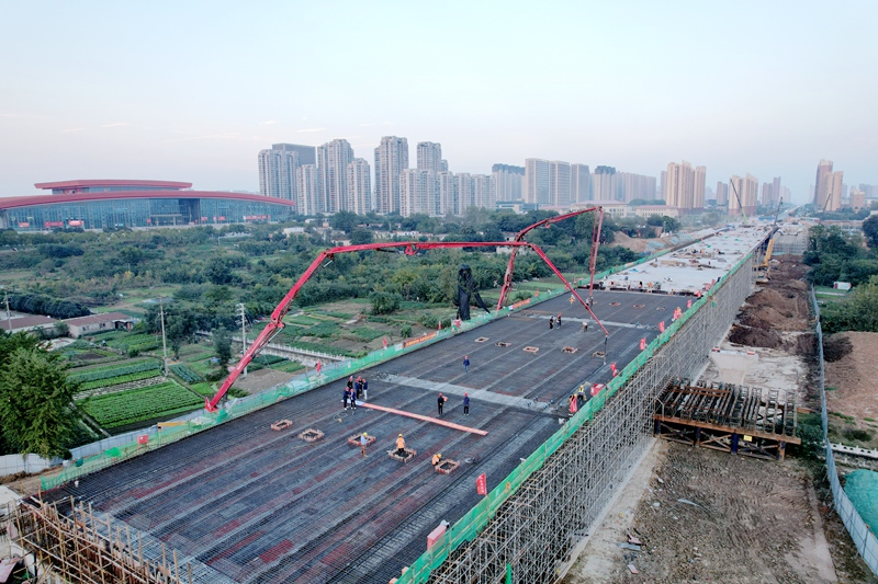 百日攻堅大會戰(zhàn)|信陽新十一大道項目主線橋梁全線貫通 發(fā)布時間:2023年10月16日 來源:橋梁分公司 發(fā)布人:黨委工作部 作者:章香國 瀏覽:4271次 10月13日晚,信陽新十一大道項目順利完成主線橋梁最后一聯(lián)箱梁頂板混凝土完成澆筑,標志著主線橋梁全線貫通,向著奮力沖刺四季度、實現(xiàn)年內(nèi)建成通車目標邁出了堅實一步。