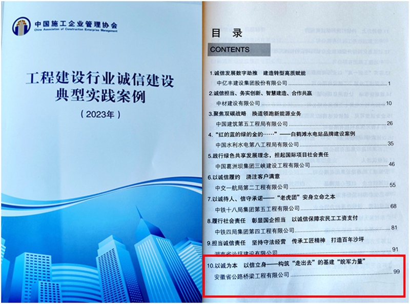 近日,從中國(guó)施工企業(yè)管理協(xié)會(huì)傳來(lái)喜訊,公司入選“2023年工程建設(shè)行業(yè)誠(chéng)信建設(shè)典型實(shí)踐案例”。