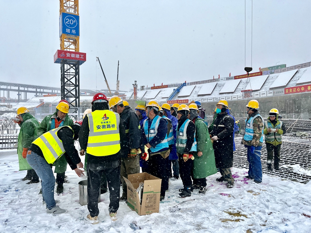 伴隨著寒潮來襲,為積極應(yīng)對降雪和斷崖式降溫天氣,確保全體建設(shè)者溫暖過冬,近日,公司各項目精心打好冬季送溫暖“組合拳”,為一線建設(shè)者們及時發(fā)放防寒服、棉鞋和手套等防寒防滑物品,在寒風(fēng)中為他們送去姜湯、熱水,在深夜里準備好熱湯、熱飯......用濃濃的“家文化”驅(qū)散寒冷,讓建設(shè)者們在冬日里暖身又暖心,為全面沖刺年度目標任務(wù)保駕護航。