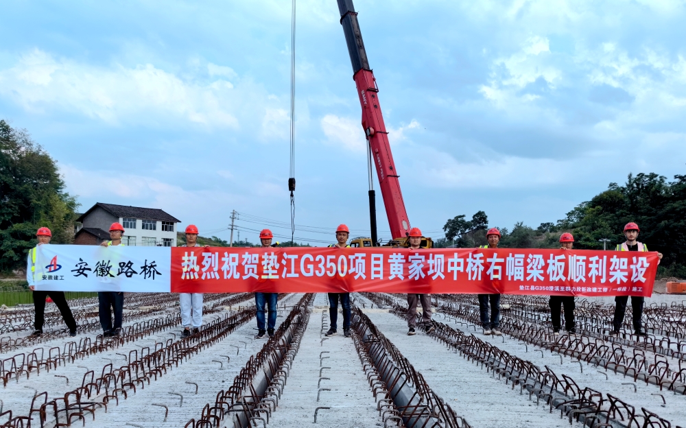 【路橋“競(jìng)”行時(shí)】重慶墊江項(xiàng)目黃家壩中橋右幅預(yù)制空心梁板架設(shè)完成