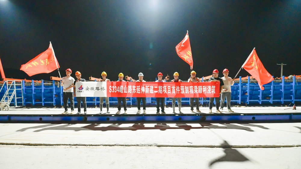 【路橋“競”行時】S334峨山路東延伸新建二期工程項目首片預制箱梁澆筑完成