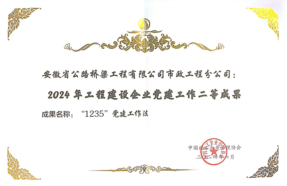 公司兩項黨建品牌獲評中施企協(xié)2024年工程建設(shè)企業(yè)黨建工作二等成果