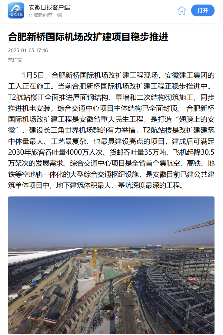 【名媒聚焦】安徽日報、合肥新聞聯(lián)播等省市主流媒體關(guān)注報道合肥新橋國際機場綜合交通中心項目
