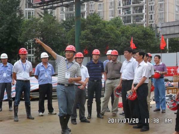 720上午11:30,合肥市人大代表團(tuán)一行14人蒞臨我項(xiàng)目工地檢查指導(dǎo)工作。公司副總經(jīng)理孫學(xué)軍、合肥市重點(diǎn)工程建設(shè)管理局有關(guān)領(lǐng)導(dǎo)、項(xiàng)目經(jīng)理李建成等陪同。