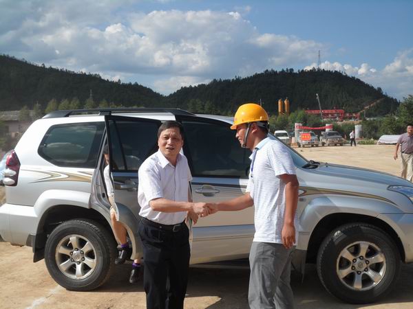 下午16:00,馬廳長(zhǎng)一行冒著酷暑抵達(dá)我部2#預(yù)制梁場(chǎng)施工現(xiàn)場(chǎng)。一下車(chē),馬廳長(zhǎng)便與我部全體參建人員親切握手。隨后,馬廳長(zhǎng)一行來(lái)到大廣高速龍楊段線路圖前,細(xì)心聽(tīng)取了大廣高速龍楊段項(xiàng)目辦總工周軍平對(duì)整條工程線路概況的介紹以及對(duì)工程進(jìn)度、質(zhì)量、安全管理等情況的簡(jiǎn)單匯報(bào)。期間,針對(duì)馬廳長(zhǎng)提出的問(wèn)題,項(xiàng)目經(jīng)理羅權(quán)一一作出了詳細(xì)解答。馬廳長(zhǎng)高度贊揚(yáng)了我公司在江西高速建設(shè)中所作出的杰出貢獻(xiàn),并鼓勵(lì)我B1標(biāo)項(xiàng)目部再接再厲,爭(zhēng)創(chuàng)佳績(jī)。