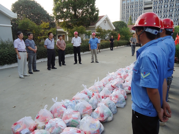 下午5時(shí),寧世明副區(qū)長一行來到懷寧北路1標(biāo)施工現(xiàn)場,向冒著酷暑辛勤工作的廣大一線員工表示親切慰問。寧副區(qū)長關(guān)切的詢問員工們的生活情況及高溫天氣下的作業(yè)時(shí)間安排,并親手送上綠豆、白糖、純凈水、毛巾、風(fēng)油精等防暑降溫物品。寧副區(qū)長要求有關(guān)部門全力做好高溫季節(jié)各項(xiàng)工作,并叮囑工程負(fù)責(zé)人,無論工期多緊,也要做好安全生產(chǎn)工作,夏天氣溫高,要合理安排施工時(shí)間,在保證工程質(zhì)量、進(jìn)度的同時(shí),確保工人們勞逸結(jié)合,身體健康。