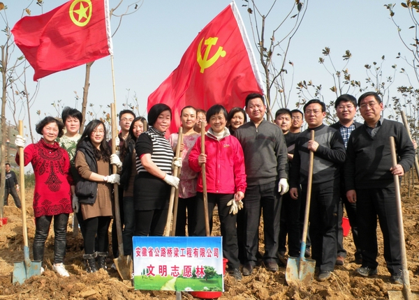 植樹活動在蜀山區(qū)新產(chǎn)業(yè)園區(qū)蜀麓公園進行。公司積極認種認養(yǎng)了50余棵樹木,建立了“安徽省公路橋梁工程有限公司文明志愿林”。在陳書記的帶領(lǐng)下,大家分工明確,相互配合,有人抬樹,有人鏟土,有人澆水,忙的熱火朝天。一個多小時后,一排排樹木整齊的矗立著,迎著春風,煥發(fā)著勃勃生機。