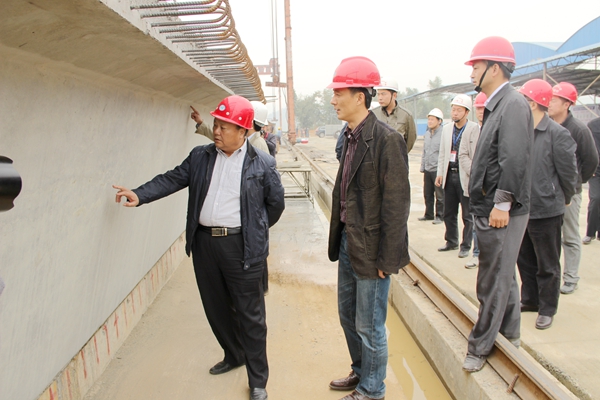 屠董事長一行在寧千02標項目玉虹大橋梁場進行了實地察看,并聽取了項目負責人對項目施工進展情況的介紹。屠董事長一行對寧千02標項目目前取得的成績表示滿意,對寧千02標項目部上下團結(jié)一致,有力抓住大干時機,加快推進施工進度的有效舉措表示肯定。屠董事長要求項目在下一步的工作中一定組織安排好后續(xù)施工計劃和進度計劃,強化細節(jié)管理,做好質(zhì)量安全管理,保證重大施工節(jié)點的落實。