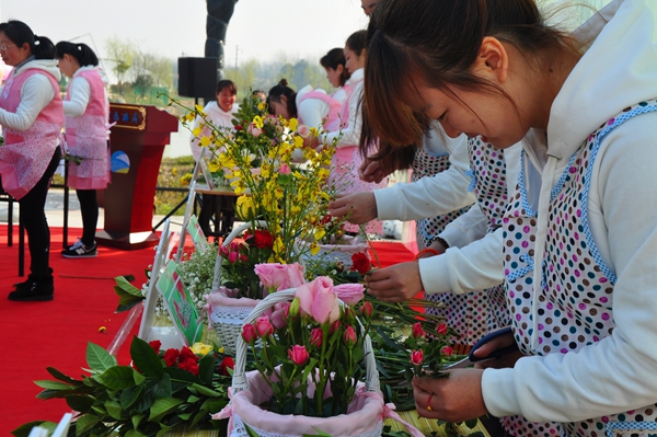 在主題為“最美的花兒獻給你”的花藝比賽中,來自兩家單位的十位女職工沉著冷靜,認真挑選花材,巧妙構(gòu)思作品,優(yōu)雅的動作,嫻熟的技藝,使得一個個設計新穎、造型亮麗的花藝作品呈現(xiàn)在觀眾面前,為三月的龍舒大地增添了幾許春色。在 “百花齊放”踩氣球友誼賽中,兩家單位女職工自由組合,隨著主持人的一聲令下,選手們一沖而上,互相踩破對手的氣球,比賽氣氛熱烈,充滿激情,吶喊聲、歡笑聲匯聚成一條快樂的河流。在團體跳繩比賽中,兩隊隊員齊心協(xié)力,熱情高漲,彩繩離地起,群鳳當空舞,盡情演繹著巾幗魅力,把現(xiàn)場氣氛推向高潮。
