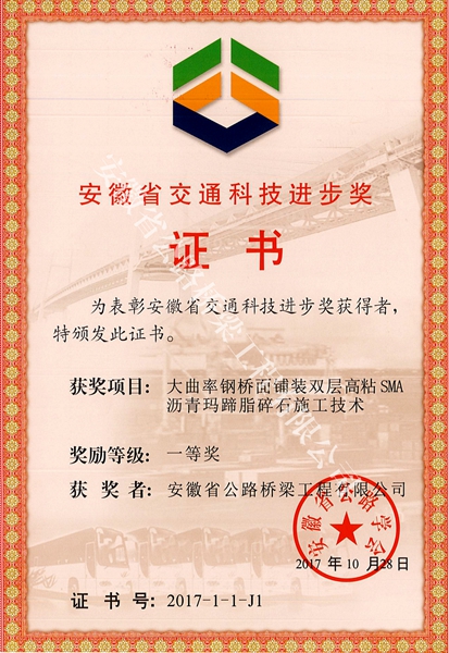 近年來,公司積極實施創(chuàng)新驅(qū)動發(fā)展戰(zhàn)略,充分依托省級技術(shù)中心,重點立足新設(shè)備、新材料、新工藝運用,大力推進科技創(chuàng)新,持續(xù)加強科技成果轉(zhuǎn)化,以科技創(chuàng)新助推企業(yè)轉(zhuǎn)型發(fā)展、跨越發(fā)展、高效發(fā)展,取得了良好成績。此次兩項成果榮獲省公路學會交通科技進步獎一等獎,充分體現(xiàn)了在公路工程特級資質(zhì)新發(fā)展平臺上公司科技創(chuàng)新實力的進一步增強。