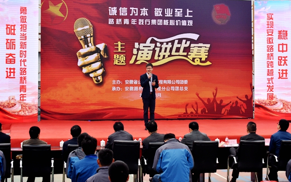 公司黨委書記、董事長、總經(jīng)理孫學(xué)軍致開幕辭,他代表公司對(duì)蒞臨現(xiàn)場的嘉賓表示熱烈歡迎,向參賽選手及一線青年員工致以美好祝愿。孫總指出:“誠信為本 敬業(yè)至上”是集團(tuán)公司企業(yè)文化的精髓和靈魂,廣大團(tuán)員青年要深刻領(lǐng)會(huì)集團(tuán)核心價(jià)值觀的精神實(shí)質(zhì),傳承路橋文化特色,立足工作實(shí)際,內(nèi)化于心,外化于行,充分展現(xiàn)新時(shí)代路橋人的精神面貌。孫總要求,全體路橋青年要深入學(xué)習(xí)貫徹黨的十九大精神,始終堅(jiān)持誠信為本、敬業(yè)至上,用實(shí)際行動(dòng)為奮力開創(chuàng)安徽路橋轉(zhuǎn)型發(fā)展新局面貢獻(xiàn)力量。