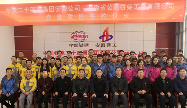 12月12日下午,合肥軌道交通4號線01標聯(lián)合體中鐵二十四局安徽公司項目部黨支部和安徽省路橋公司項目黨支部黨建聯(lián)建簽約儀式隆重舉行。安徽路橋公司黨委書記、董事長、總經(jīng)理孫學(xué)軍,紀委書記林緒坤,副總經(jīng)理任杰,中鐵二十四局集團安徽公司黨委書記房明州,黨委副書記、紀委書記侯衛(wèi)超等領(lǐng)導(dǎo)出席。