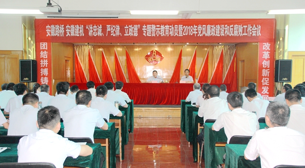 6月13日,公司在七樓會(huì)議室召開“講忠誠、嚴(yán)紀(jì)律、立政德”專題警示教育動(dòng)員暨2018年度黨風(fēng)廉政建設(shè)和反腐敗工作會(huì)議。公司領(lǐng)導(dǎo)班子成員、中層干部和安徽建機(jī)中層以上干部參加會(huì)議,公司黨委書記、董事長、總經(jīng)理孫學(xué)軍出席會(huì)議并作動(dòng)員講話,會(huì)議由公司黨委委員、紀(jì)委書記林緒坤主持,