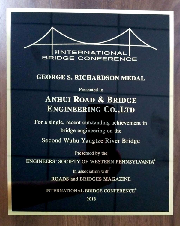 2018年6月,由公司參建的蕪湖長江公路二橋榮獲第35屆國際橋梁大會(IBC)最高獎——喬治·理查德森獎,這也是公司首次榮獲該項國際大獎。