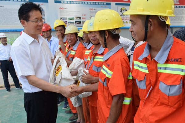 8月3日,淮北市委常委、紀(jì)委書記宰學(xué)明在市紀(jì)委監(jiān)察委和市總工會(huì)相關(guān)負(fù)責(zé)人的陪同下,深入淮北市S101及S254改建工程PPP項(xiàng)目施工現(xiàn)場,看望慰問公司一線參建人員。