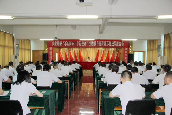 為進(jìn)一步推深做實(shí)“不忘初心、牢記使命”主題教育,按照公司主題教育方案部署,8月2日下午,股份公司副總經(jīng)理、公司黨委書記、董事長孫學(xué)軍以“守初心 擔(dān)使命 找差距 抓落實(shí)——用習(xí)近平新時(shí)代中國特色社會主義思想指導(dǎo)打造品質(zhì)路橋卓越路橋”為主題,作了一場主題教育黨課暨形勢政策報(bào)告會。集團(tuán)主題教育第四指導(dǎo)組副組長王永來到會指導(dǎo)。公司領(lǐng)導(dǎo),中層干部,在肥項(xiàng)目經(jīng)理、黨支部負(fù)責(zé)人,機(jī)關(guān)全體黨員100余人參加了報(bào)告會。