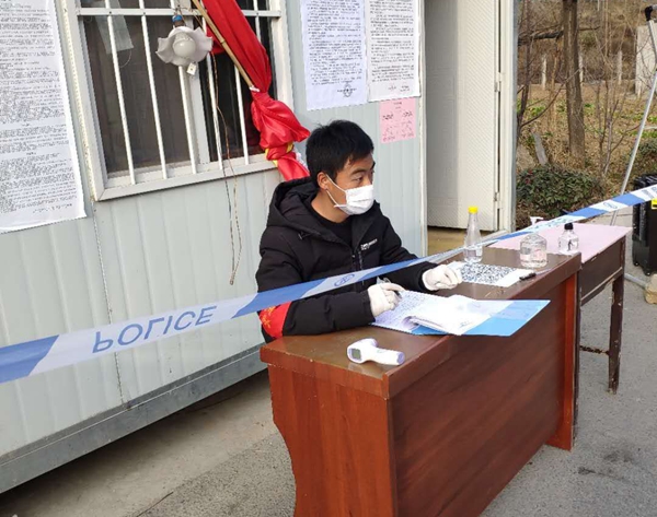 在陜西省柞水縣營盤鎮(zhèn)藥王堂村,陪伴余應(yīng)奇度過春節(jié)的是一把凳子、一張桌子、一面旗幟。余應(yīng)奇是G342合陽段改建工程項目的技術(shù)員。疫情發(fā)生后,他主動請戰(zhàn),數(shù)九寒冬,獨自守住村口的一個交通要道,耐心勸阻過往村民,不漏一車、不漏一人,認(rèn)真進(jìn)行登記檢測,認(rèn)真宣講疫情防控政策和知識,努力為家鄉(xiāng)構(gòu)筑起堅固防線。