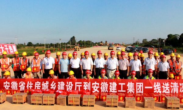 在施工現(xiàn)場,陳楊年代表安徽省住建廳向參建人員表示慰問,并為一線施工人員發(fā)放了防暑降溫慰問品。他指出,進(jìn)入暑期以來,一線作業(yè)人員戰(zhàn)高溫、斗酷暑、搶工期、趕進(jìn)度。希望省路橋公司要壓實(shí)安全生產(chǎn)主體責(zé)任,科學(xué)安排施工作業(yè)時(shí)間,做好防暑降溫工作,保證參建人員的施工安全;廣大工友要立足崗位,做好本職工作,牢記安全規(guī)章制度,確保身體健康和施工安全。