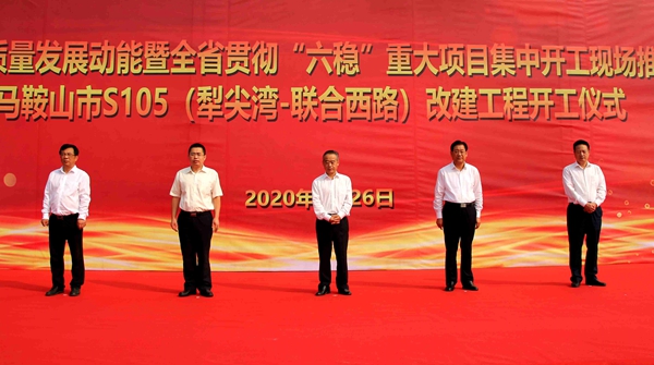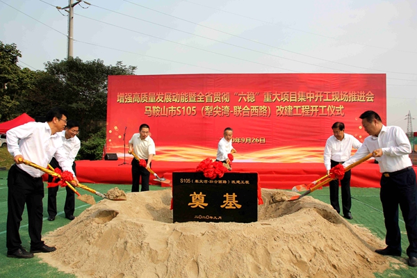 9月26日上午,增強高質(zhì)量發(fā)展動能暨全省貫徹“六穩(wěn)”重大項目集中開工現(xiàn)場推進會(馬鞍山市分會場)在公司承建的S105(犁尖灣-聯(lián)合西路)改建工程現(xiàn)場舉行,該項目開工儀式同期舉辦。馬鞍山市委書記張岳峰出席儀式并宣布工程開工,市委副書記、市長袁方,公司黨委副書記、總經(jīng)理錢申春分別致辭。