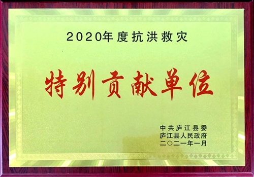 公司榮獲廬江縣“抗洪救災(zāi)特別貢獻(xiàn)單位”稱(chēng)號(hào)