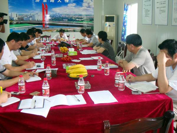 李書記一行首先深入施工現(xiàn)場,一邊詢問工程進展情況,一邊查看和指導(dǎo)。隨后在淠望路項目部會議室聽取了六安市建委、項目監(jiān)理單位、施工單位對淠望路大橋項目管理、施工進度等情況的匯報。李書記在肯定項目前期工作成績的同時,對淠望路大橋后期施工工作提出了具體要求和指導(dǎo)意見:一、工程項目重要性。淠望路大橋乃是六安市重點建設(shè)工程之一,地處城市核心地帶,是貫通新老城區(qū)的一條重要聯(lián)系紐帶,建成后將成為六安市標(biāo)志性的建筑;二、目標(biāo)要明確。淠望路大橋的建設(shè)是六安人民關(guān)注的焦點,政治和社會意義重大,市委市政府高度重視。要求施工單位要加強質(zhì)量控制,加快工程進度,在施工各個環(huán)節(jié)力求做到科學(xué)化、規(guī)范化、程序化、標(biāo)準(zhǔn)化,要優(yōu)質(zhì)、高效、安全、按期完成淠望路大橋施工任務(wù),力爭奪取“黃山杯”;三、措施要有效。要求施工單位加大機械設(shè)備和人員的投入,并認(rèn)真落實各項措施,確保組織管理到位,現(xiàn)場技術(shù)力量到位,既定進度到位,安全管理到位,質(zhì)量控制工作到位,爭取把淠望路大橋建成優(yōu)質(zhì)工程,早日向六安市人民交上一份滿意的答卷。最后,李書記對安徽路橋在淠望路大橋建設(shè)中做出的努力給予了高度的評價。
