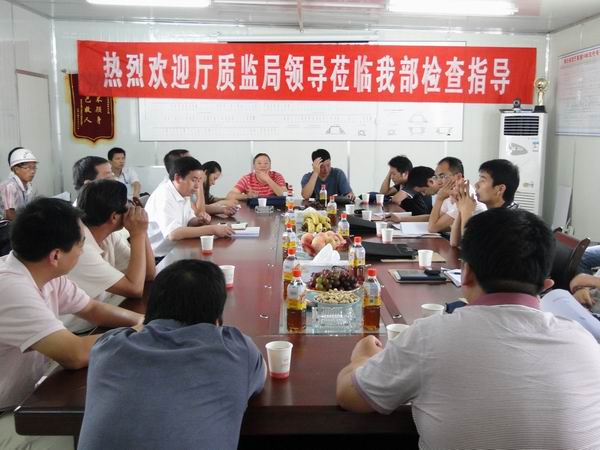 劉軍首先主持召開質量安全檢查布置會議,簡要的介紹本次質量安全檢查的內容和分工。項目經理王遠勝向檢查組一行就我部施工進度、質量、安全、環(huán)保、內業(yè)管理和目前施工存在的困難進行專門匯報。