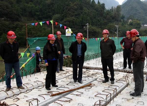 黃主席一行在項(xiàng)目經(jīng)理王遠(yuǎn)勝、項(xiàng)目黨支部書記邵建新、總工吳昊的陪同下深入各工區(qū)、施工一線了解我部一工區(qū)梁板預(yù)制、鋼筋加工和橋梁架設(shè)情況,二工區(qū)立柱施工情況和三工區(qū)梁場(chǎng)恢復(fù)生產(chǎn)的情況,并聽取項(xiàng)目經(jīng)理王遠(yuǎn)勝關(guān)于我部水毀及災(zāi)后恢復(fù)生產(chǎn)的工作匯報(bào)。