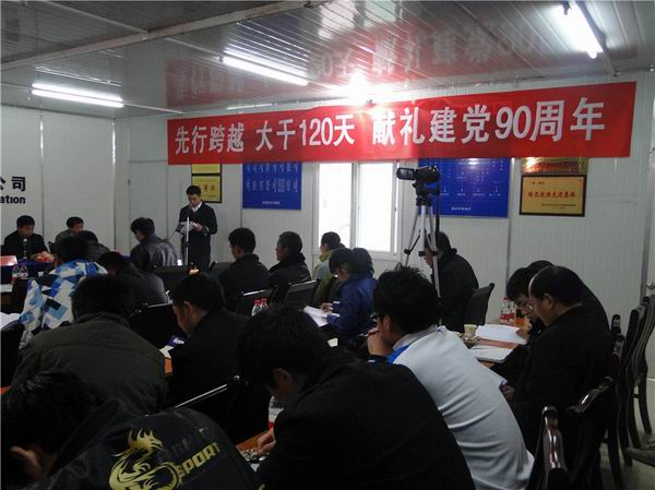 會議首先由項目經(jīng)理王遠(yuǎn)勝做題為《凝心聚力、奮發(fā)拼搏,實現(xiàn)總目標(biāo),創(chuàng)新超越,爭創(chuàng)一流,奪取新勝利》的動員講話,分析項目生產(chǎn)形勢,實事求是的指出當(dāng)前項目面臨的困難,提出我們掀起大干高潮的優(yōu)勢和有利條件,制定了“大干120天,奪取6月份雙幅貫通”的競賽目標(biāo)。大會學(xué)習(xí)了指揮部相關(guān)文件,通過樂競賽實施方案和獎勵實施辦法,項目黨支部、團(tuán)支部發(fā)出勞動競賽倡議書,施工隊代表做了競賽承諾。