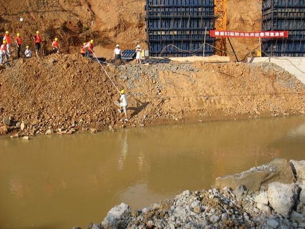 為確保汛期自然災(zāi)害突發(fā)時能夠得到及時、迅速、高效、有序的處理,保障全體施工人員的生命財產(chǎn)安全和身心健康,結(jié)合 “安全生產(chǎn)月”活動要求,贛崇B3標于6月21日在蘆灣高架開展防汛抗洪應(yīng)急演練。本次演練由項目安全副經(jīng)理組織,項目經(jīng)理親自指揮,高駐辦安全專監(jiān)觀摩、監(jiān)督和評價。