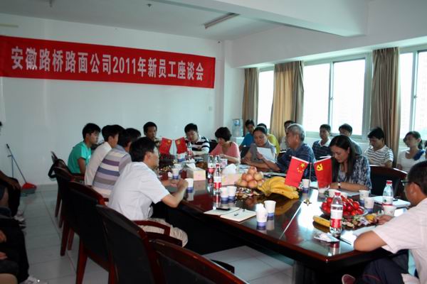 為進一步了解新員工的思想動態(tài),促進員工之間、員工與領(lǐng)導(dǎo)之間的溝通和交流,使新進員工盡快融入到安徽路橋路面公司這個大家庭中來,7月6日上午,安徽路橋路面公司2011屆新員工座談會在路面公司六樓會議室舉行。公司黨支部書記王年保、總經(jīng)濟師袁青嶺、工會副主席姚光群、租賃公司經(jīng)理蔡傳勇以及周六路項目經(jīng)理王小杰、蚌淮路項目副經(jīng)理姚琪等領(lǐng)導(dǎo)及新進員工40余人參加了座談會。會議由人力資源部經(jīng)理錢紅梅主持。