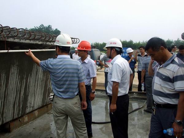 在箱梁場(chǎng)大家詳細(xì)討論了箱梁噴淋養(yǎng)生工藝的細(xì)節(jié)和優(yōu)化方案,對(duì)箱梁預(yù)制端頭質(zhì)量控制等各個(gè)細(xì)節(jié)進(jìn)行了充分的交流,也提出了寶貴的意見。最后,大家就箱梁場(chǎng)地布設(shè)、臨時(shí)用地等各項(xiàng)建設(shè)問題進(jìn)行了探討。