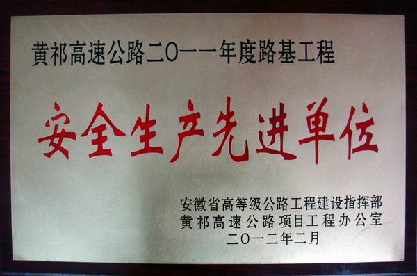黃祁08標(biāo)獲黃祁高速2011年度“安全生產(chǎn)先進(jìn)單位”