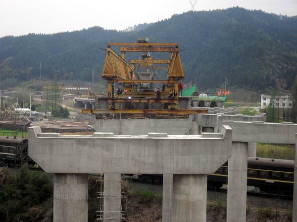 黃祁08標完成上跨皖贛鐵路橋右幅箱梁架設