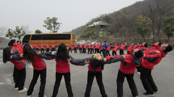 4日一大早,在凜冽的寒風(fēng)中,大家分成三個(gè)組,并起好各自的隊(duì)名:同心隊(duì)、利劍隊(duì)和團(tuán)結(jié)隊(duì)。拓展訓(xùn)練的項(xiàng)目共分為背摔、挑戰(zhàn)150、七巧板、極速60秒、驛站傳書、創(chuàng)意晚會(huì)、跨越斷橋、單杠8個(gè)項(xiàng)目。